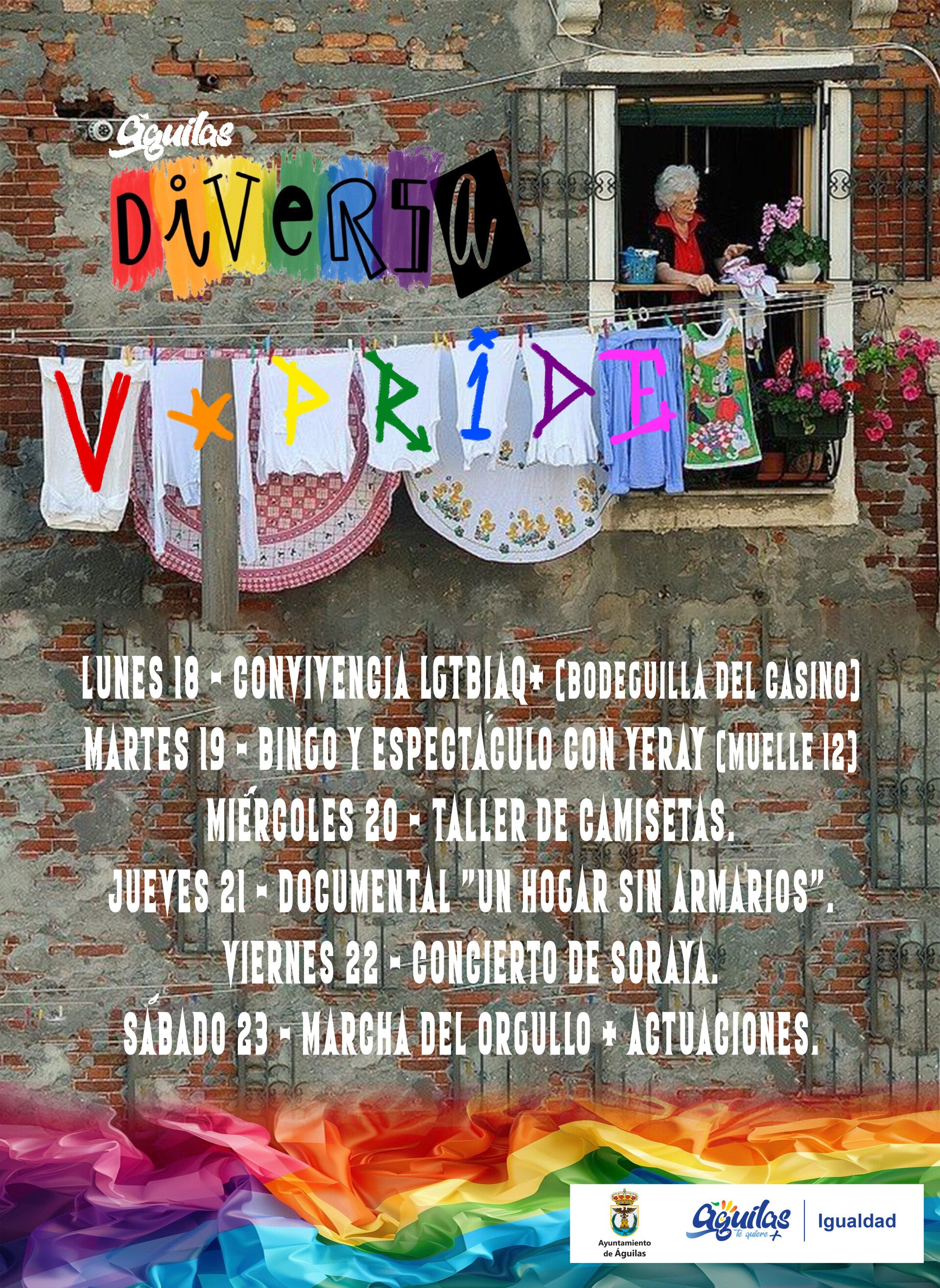 Este año, el V Pride Águilas, celebrado el sábado 23 de agosto, fue una auténtica celebración de libertad que unió a la comunidad LGTBIQ+ y a todo el municipio en una misma fiesta. Más que un evento, fue un símbolo de orgullo, visibilidad y reivindicación, consolidándose ya como uno de los más esperados del verano en la Región de Murcia